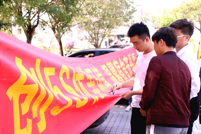 横幅上渐渐布满密密麻麻的字迹,“5s”启动仪式走向了尾声,但这并不代表结束,而是新的开始。旅业学子们,四年之行,路漫漫兮,路遥遥兮,舍友相伴,不觉远矣。让我们携一颗易人之心,筑一方温馨天地。“5s”的融融之意,来日方长间,定有深悟。仪式已结,硝烟渐弥,让我们静待,看“5s”之冠,花落谁家!