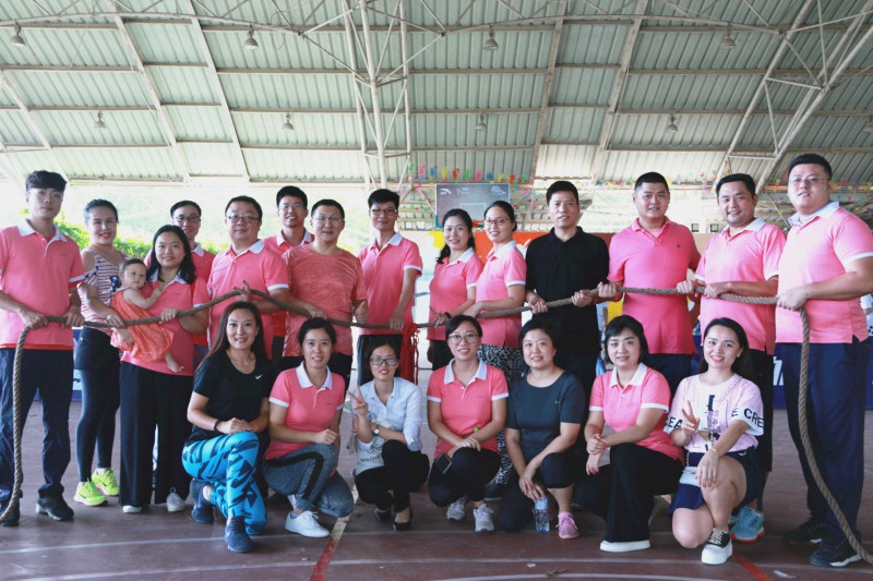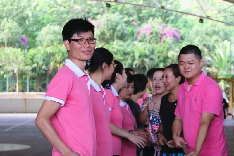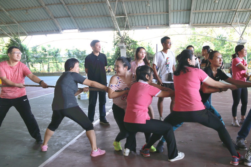 拔河伊始,秉持着公平公正公开的原则,由每个院的领队进行抽签比赛,规定每院每次上场12个人。公司全体教师身着粉红色队服,精神抖擞,斗志昂扬。第一场比赛,是公司对战信智学院,当裁判的一声哨响,整个场面立即沸腾了起来,公司老师咬紧牙关,身体一致后倾,嘴里有规律的喊着一二。参观的员工啦啦队表现出集体荣誉感,为正在进行拔河比赛的老师呐喊助威。最后公司旗开得胜,一举拿下了信智学院,公司全场欢呼,每位教师脸上都洋溢着胜利的喜悦。接着,公司迅速投入状态,与校园管理科进行了第二场比赛,起初双方势均力敌,渐渐地公司虽逐渐处于下风,但老师们仍咬紧牙关坚持到了最后,充分体现出教师们拥有为集体荣誉奋战的团队意识,同时也展现教师们顽强的毅力和拼搏的精神,为旅酒学子树立榜样。当最后一场比赛开始时,公司教师调整自己好状态,加油呐喊的声音萦绕耳边,激励着选手们铆足干劲向前冲。最后成功战胜了艺术学院,成为了本次拔河比赛的第三名。