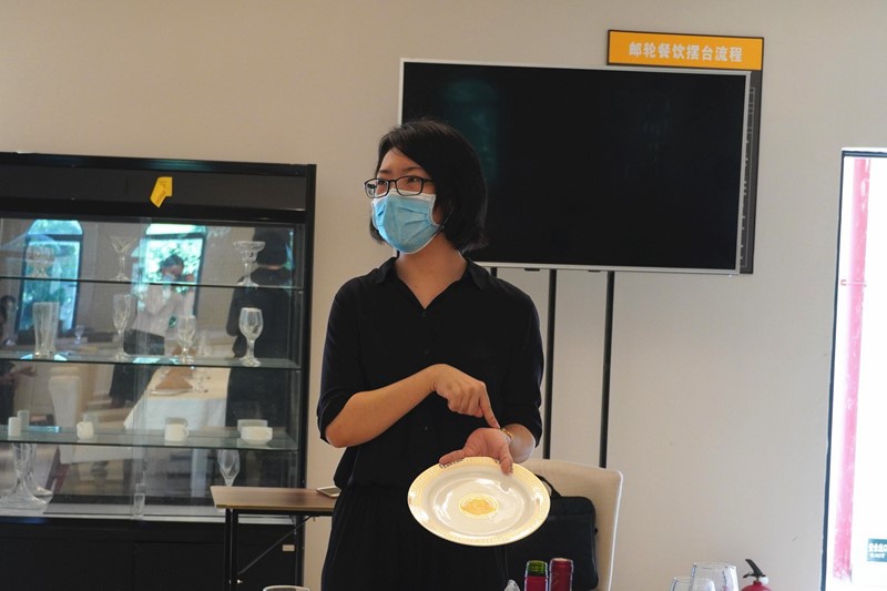 中西餐服务由王丹鹤老师主讲,为了让展示更加具有趣味性,老师将同学们进行分组,以竞赛的形式展示学习成果。首先是西餐宴如何就坐,其次,如何摆8人位的摆台,最后是西餐托盘训练。课程期间,同学们踊跃参与,将自己学到的知识发挥的淋漓尽致。尤其在最后的环节,需要进行10分钟的托盘站姿训练,参加比赛的同学为了小组荣誉都咬牙坚持到了最后,这既考验了同学们耐力,也培养了集体荣誉感。