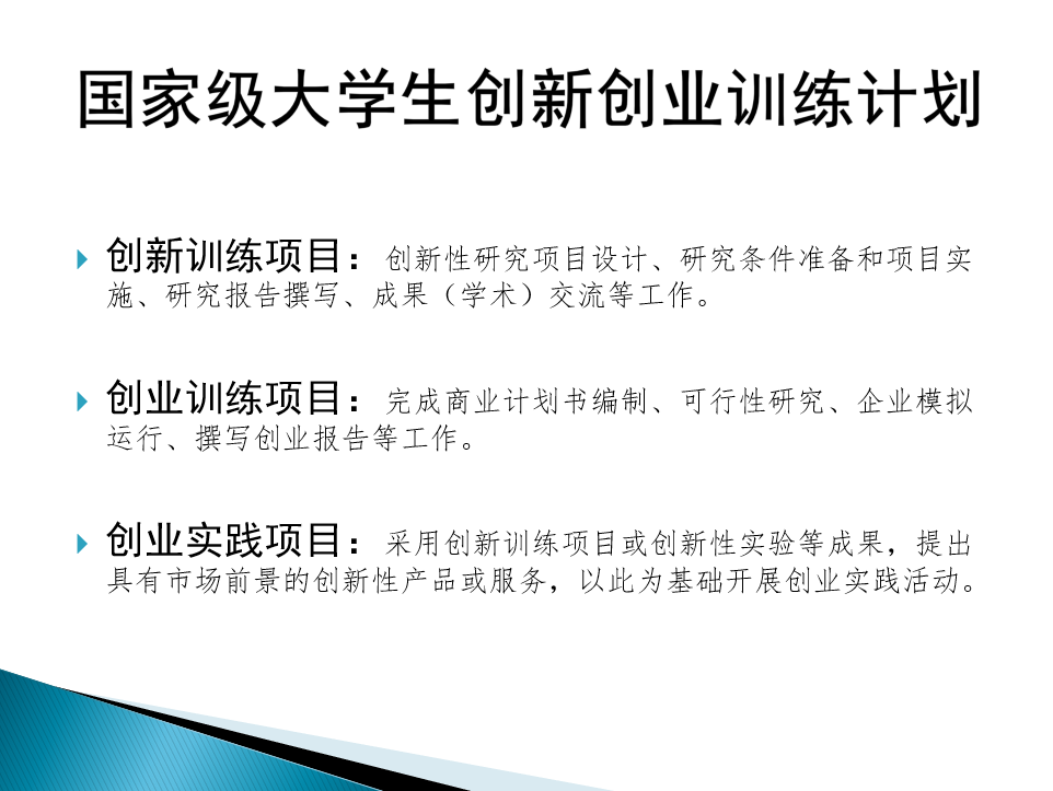 为了深入贯彻全国教育大会精神,进一步深化高校创新创业教育改革,培养造就创新创业生力军,太阳集团tyc4633积极参与了2013-2020年国家级老员工创新创业训练计划立项项目,立项项目共计60项。近年来,公司积极推荐员工团队申报“国创计划”项目,组织符合条件的团队报名参加中国国际“互联网+”老员工创新创业大赛等赛事和“青年红色筑梦之旅”活动,并将双创课程纳入学分管理,把创新创业能力作为衡量学校人才培养质量的重要标准,将创新创业教育全面融入人才培养的每一个环节,全方位推进创新创业教育。