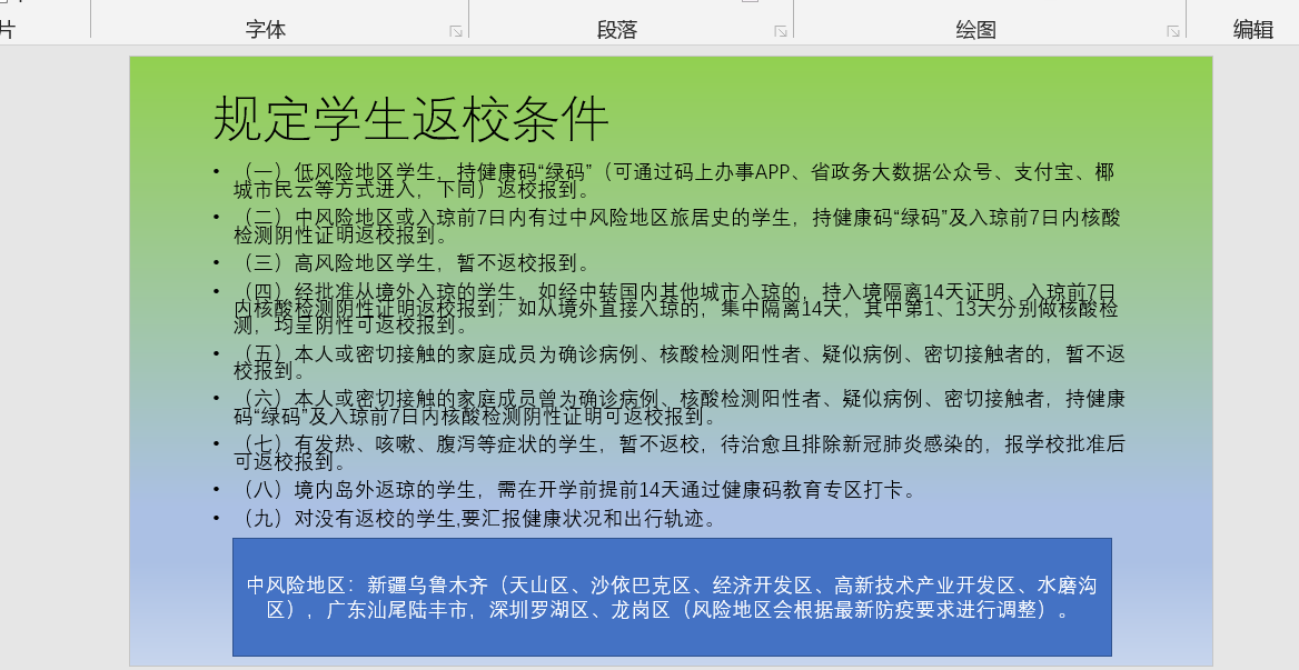 团委副书记吴小柳为会展1901班开展主题班会,班会着重强调以下四点:强调安全教育。加强老员工安全教育,是提高员工自我防范、自我保护能力。从日常生活安全到是社会治安教育,联系防诈骗视频提高员工防范意识;强调返校前的健康码打卡。所有返校员工需通过支付宝教育专区打卡,根据健康码的呈现情况来判断员工近期健康情况;强调返校准备,依照考试要求与具体疫情情况分批次返校,每位员工需要提前做好返校的准备工作;强调员工返校条件,在入琼前七日经过风险地区的旅居史、有密接触者、曾经为确诊接触者、有发烧、咳嗽等等情况一定要如实上报。班会最后吴小柳老师鼓励员工们在“安全第一”的前提下积极参加暑期三下乡活动。