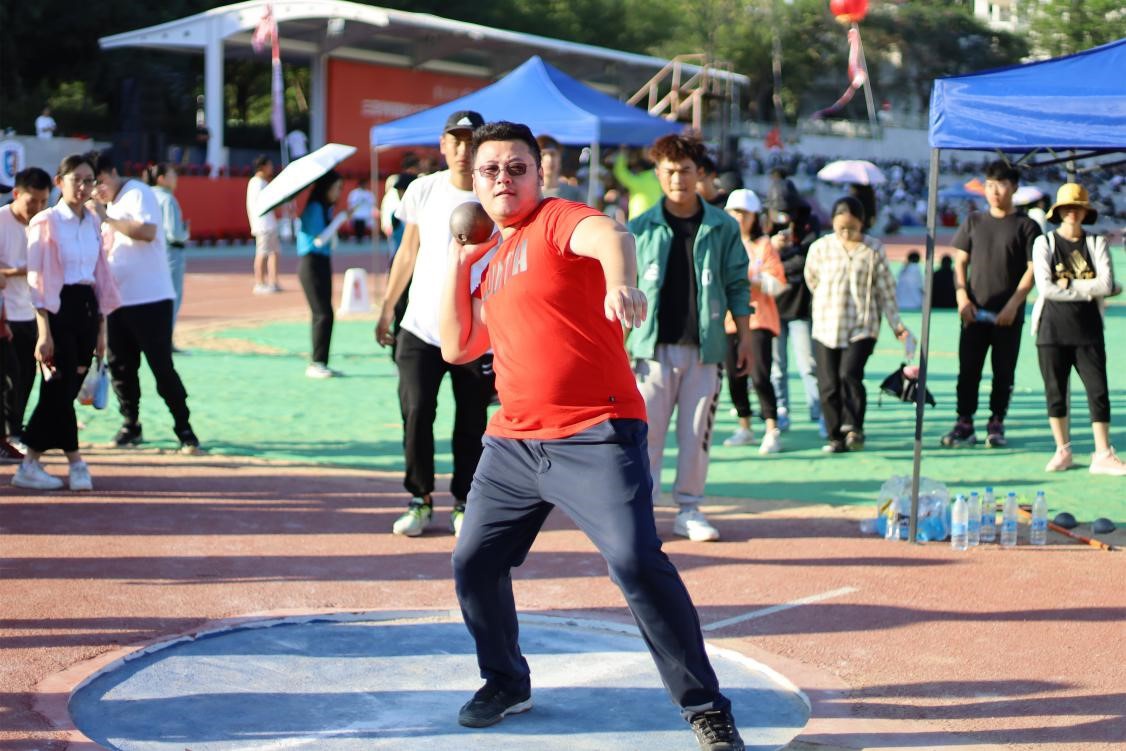 曹添老师在比赛中细心观察参赛老师的投球动作,精彩的投球表现博得场上观众阵阵掌声。功夫不负有心人,最终曹添老师不仅进入了总决赛,并以7.10米的距离取得了教师组男子铅球决赛第六名的好成绩。侯明帅老师也取得了不错的成绩,为公司体育比赛增添色彩。