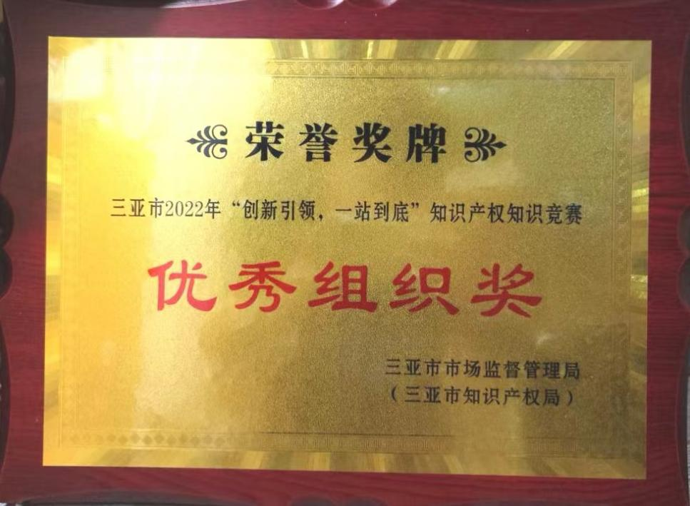 5月9日,公司2019级酒店专业的金碧茹、陆艳芳、周京京三位同学和耿佳老师,代表太阳集团tyc4633参加了由三亚市市场监督管理局(三亚市知识产权局)举办的2022年“创新引领,一站到底”知识产权知识竞赛,此次比赛由三亚市各个高职院校、本科院校、崖州科技城的部分相关管理部门参赛,竞争非常激烈。最后通过在赛场上的激烈角逐,公司获得了优秀组织奖。