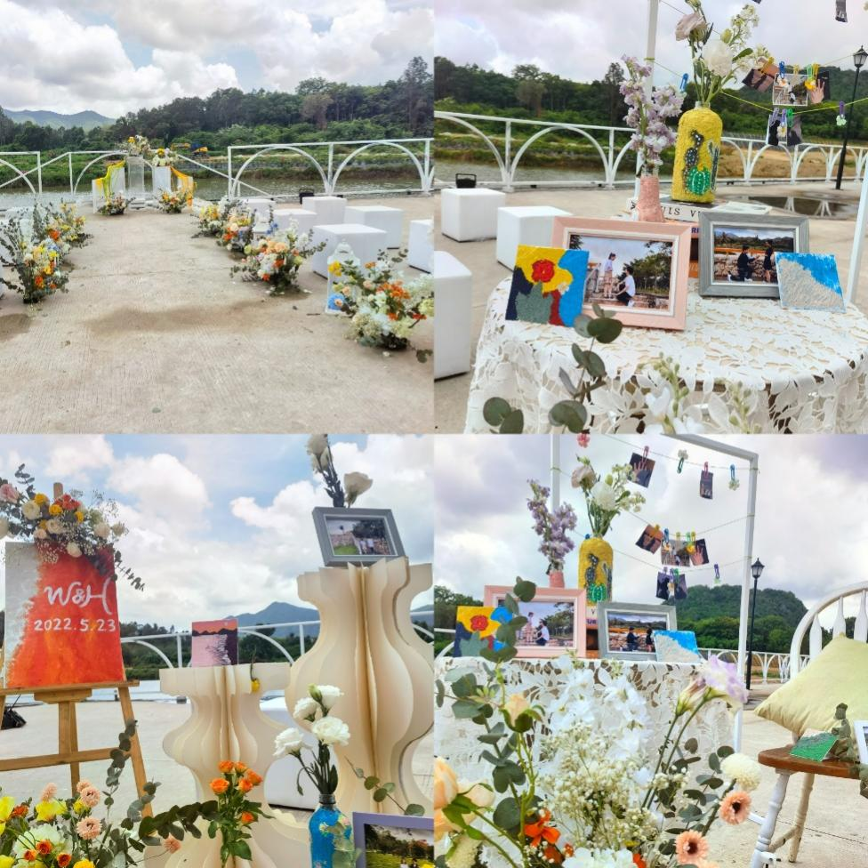 5月23日下午,旅拍婚庆科研团队结合《婚礼策划与组织》课程,在书山馆皇家水台和白鹭苑实训大厅开展本学期学术沙龙活动,实现产教研一体化,来促进教学、科研共同发展,推动专业建设。团队成员就婚礼现场花艺、气球和婚礼流程等展开讨论。