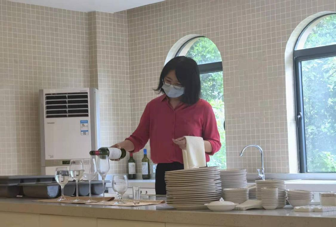 王丹鹤老师为员工们讲解酌酒过程