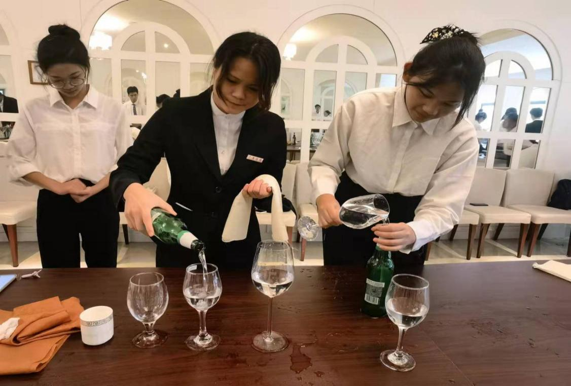 无论是“浊酒一杯家万里,燕然未勒归无计”,还是“花间一壶酒,独酌来相亲”;无论是西方的餐厅宴会,还是中餐的婚庆节日,都少不了酒的存在。饮酒首先要学会酌酒,为提高员工们的专业素养,在5月24日下午2时,酒店管理2101班在白鹭苑餐饮实验室学习酌酒礼仪。