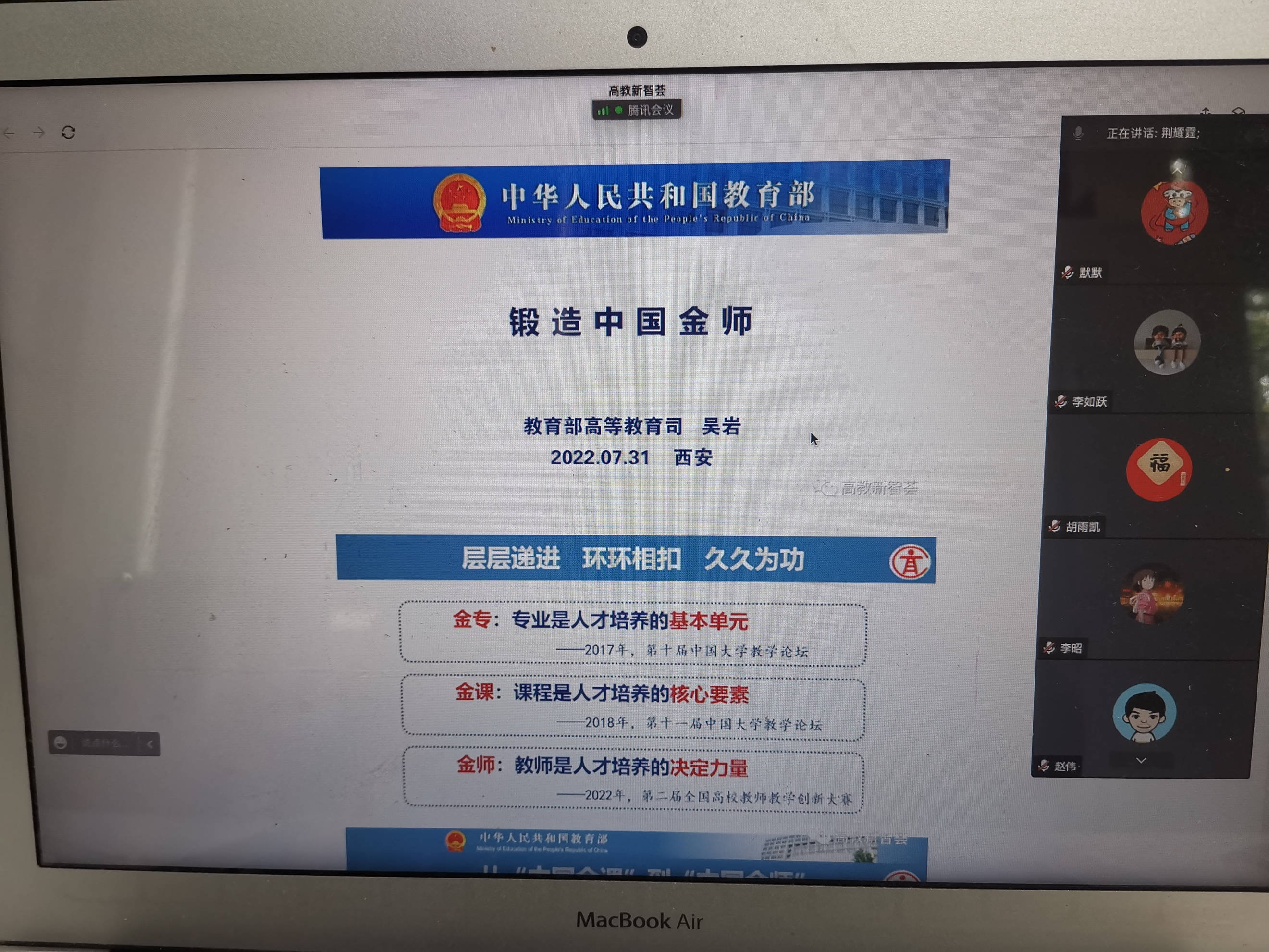 2022年8月1日——8月4日,旅游管理专业教师通过学院下发的线上材料,学习了教育部高教司司长吴岩的《锻造中国金师》主题讲话,从宏观理念、“金师”条件、创新发展等方面提出了自己的学习心得。2022年8月4日下午4点,旅游管理专业老师通过腾讯会议进一步交流了学习感悟。