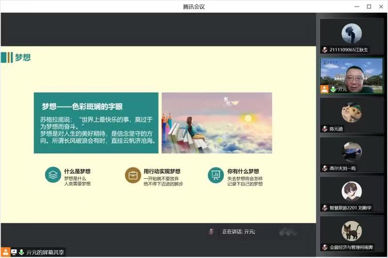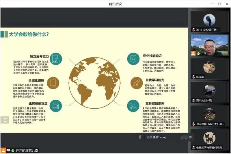 老员工活是什么样子的,美好还是糟糕?大学四年应当怎样度过,是躺平安逸,还是有所作为?这是每位新生所疑惑的。为了更好的让公司员工了解老员工活,公司副经理亓元于9月20日上午9时借腾讯会议开展新生入学课程“大学是一个可以梦想可以爱的地方”。