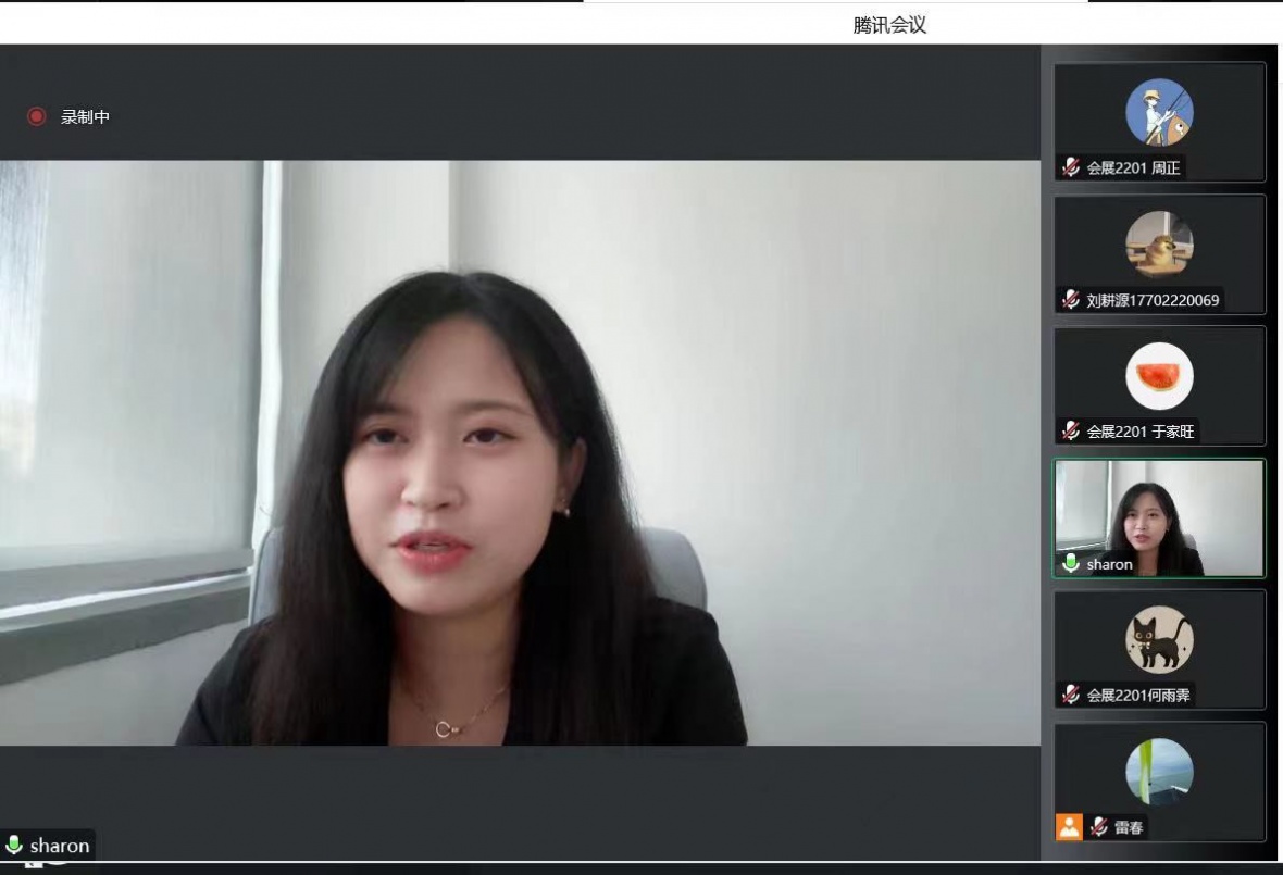 课程伊始,雷春老师为所有新生进行了线上合照,并为新生介绍了会展专业优秀毕业生代表黄敏敏学姐和唐树备学长,概述了本次会议的主要信息,使新生明确了本次课程的主要内容。
