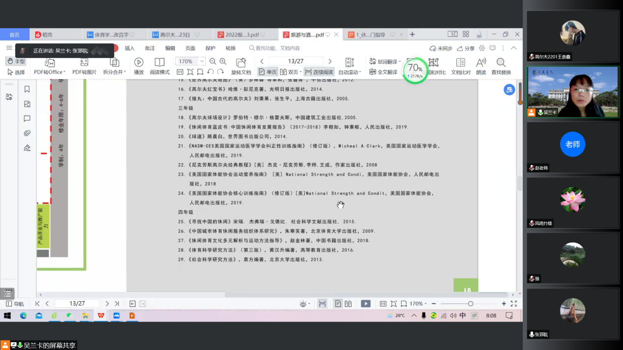 吴兰卡老师为新生们介绍高尔夫专业所需要的书籍