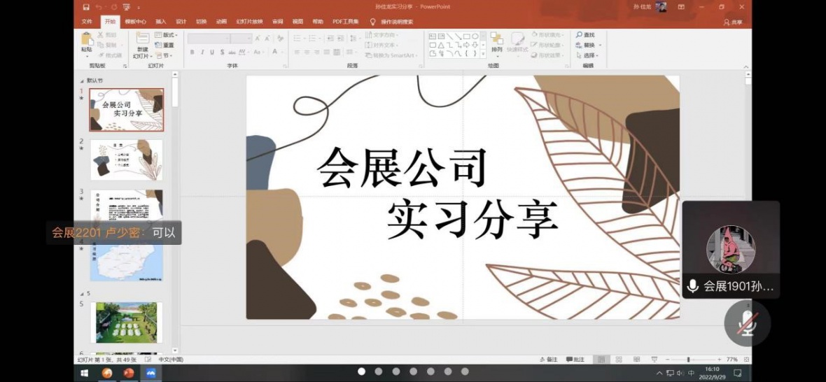 为了让公司员工能够更好地了解会展专业的课程与前景,公司于9月29日下午3时在腾讯会议由吴小柳老师和会展1901班员工为22级会展新生讲解会展通关修炼手册,公司22级会展新生积极参加。