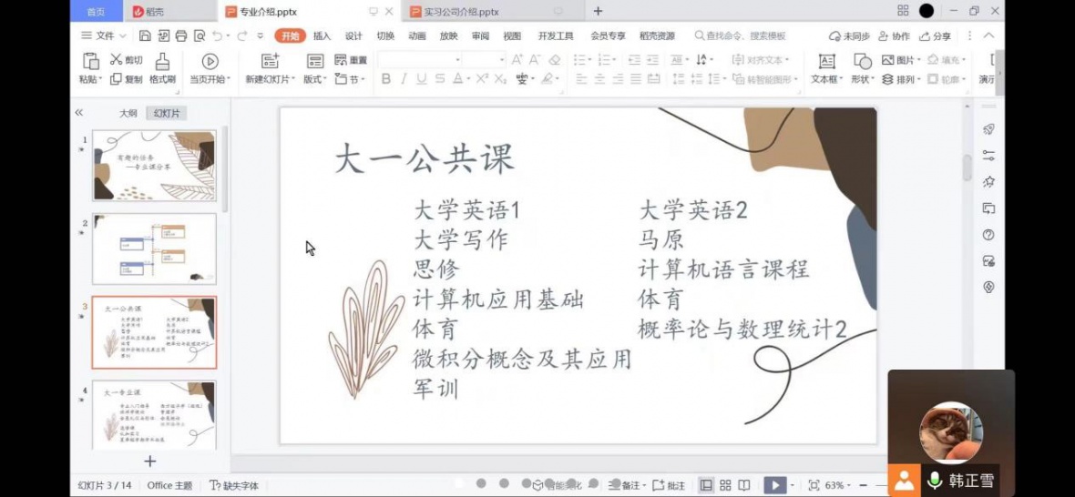 韩正雪学姐向我们介绍了大一的公共课
