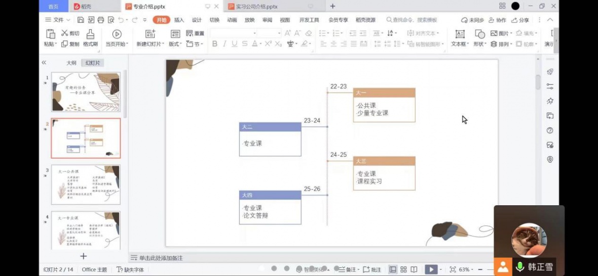韩正雪学姐向我们介绍了大学四年的主要课程