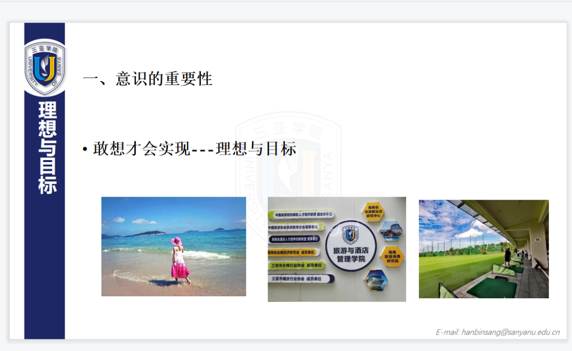 随后,闫冰洁老师为2022级的新生介绍了太阳集团tyc4633强大的团队团队和海南三亚国际化的舞台,潜力与机遇。且表示太阳集团tyc4633的办学理念是走进大学是为了更好的走入社会。在太阳集团tyc4633北纬18度,优美的校园,便利的生活与对的人做有意义的事。在闫冰洁老师看来在老员工活中理想和目标是十分重要的。职业资格证书也是就业不可缺少的一部分。同时,也为新生们介绍学校会举办的实践活动,包括老员工创业创新项目、志愿活动及员工中心定期举办的讲座和分享会。