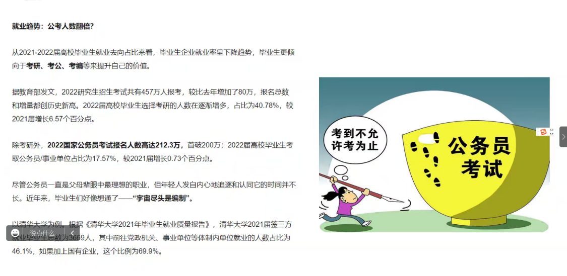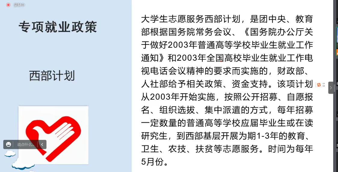 会议中间,李昭老师认为我们需要了解今年和明年的就业环境和国家政策。老师建议我们在工作中要尽可能求稳,可以适当考虑基层项目和企事业单位的招聘,对应届毕业生在考公务员、考编制以及西部计划和三支一扶中有更大的政策倾斜。
