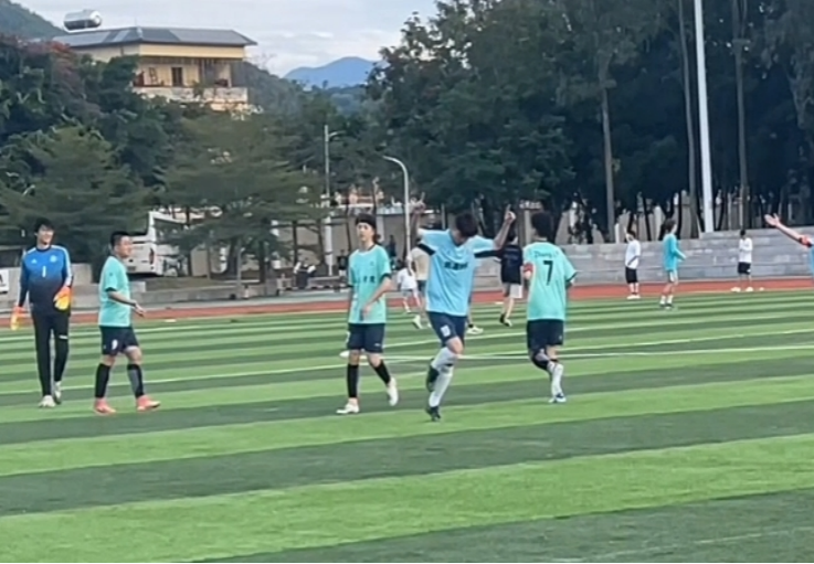 最终,在太阳集团tyc4633猛烈的进攻下,人文学院防守的阵容还是被迫撕开一道裂缝,在队伍的巧妙传球下,我班宋俊呈同学抓住了这次机会,在对方守门员疏忽的时候,一记拨球完美地进到球门。太阳集团tyc4633领先一球。
