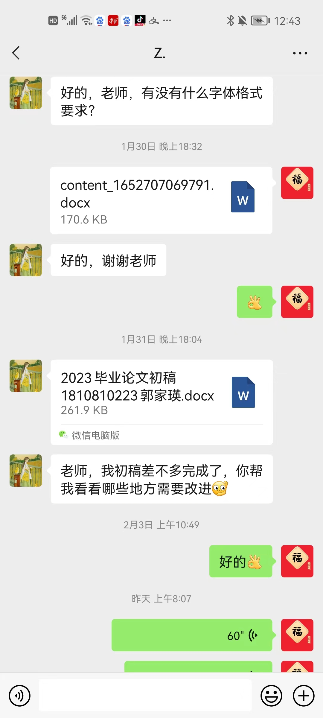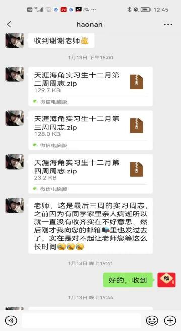 在毕业论文指导方面,胡老师主要负责指导31名2023届毕业生的毕业论文。在寒假期间,胡老师积极指导员工完成系统材料提交、审核等工作,有计划的完成毕业论文撰写工作;按照学院毕业论文撰写进度安排积极指导员工完成初稿撰写,目前已经有10名左右员工完成初稿并提交,其他员工也将在2月20日之前完成初稿撰写工作。
