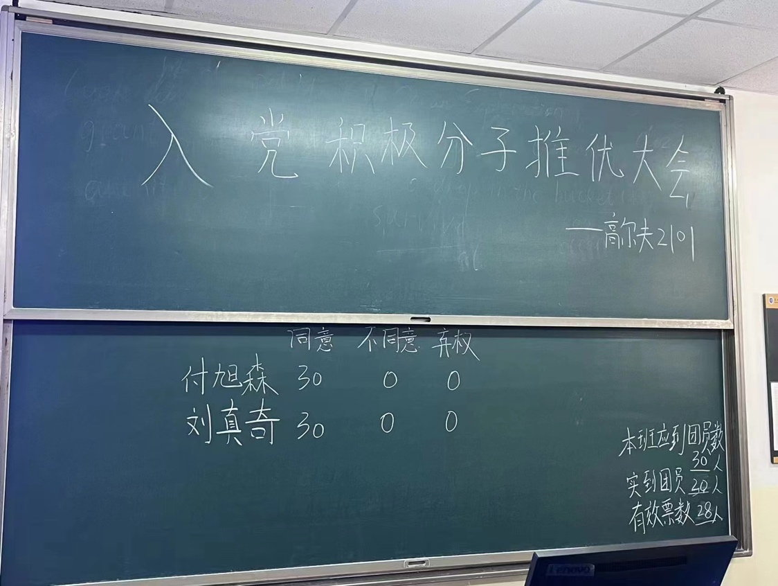 这个学期高尔夫班组织了班级推优大会,推优大会于3月22日下午在书知楼2107开始,主持人为高尔夫班张泽栋,应到团员30人实到团员30人,团委干部由王程曦,出席老师为导员李琴。推优大会的俩位同学分别是付旭森和刘真奇,最终结果俩位同学都以全票通过。